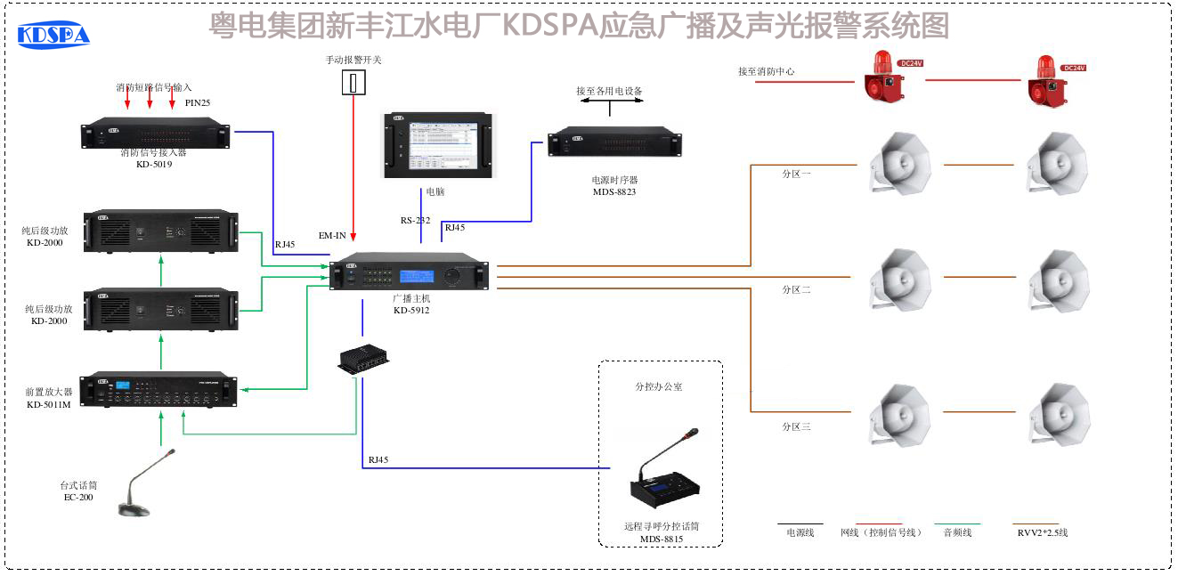 三、新豐江水電站應急廣播及聲光報警系統設計連接圖