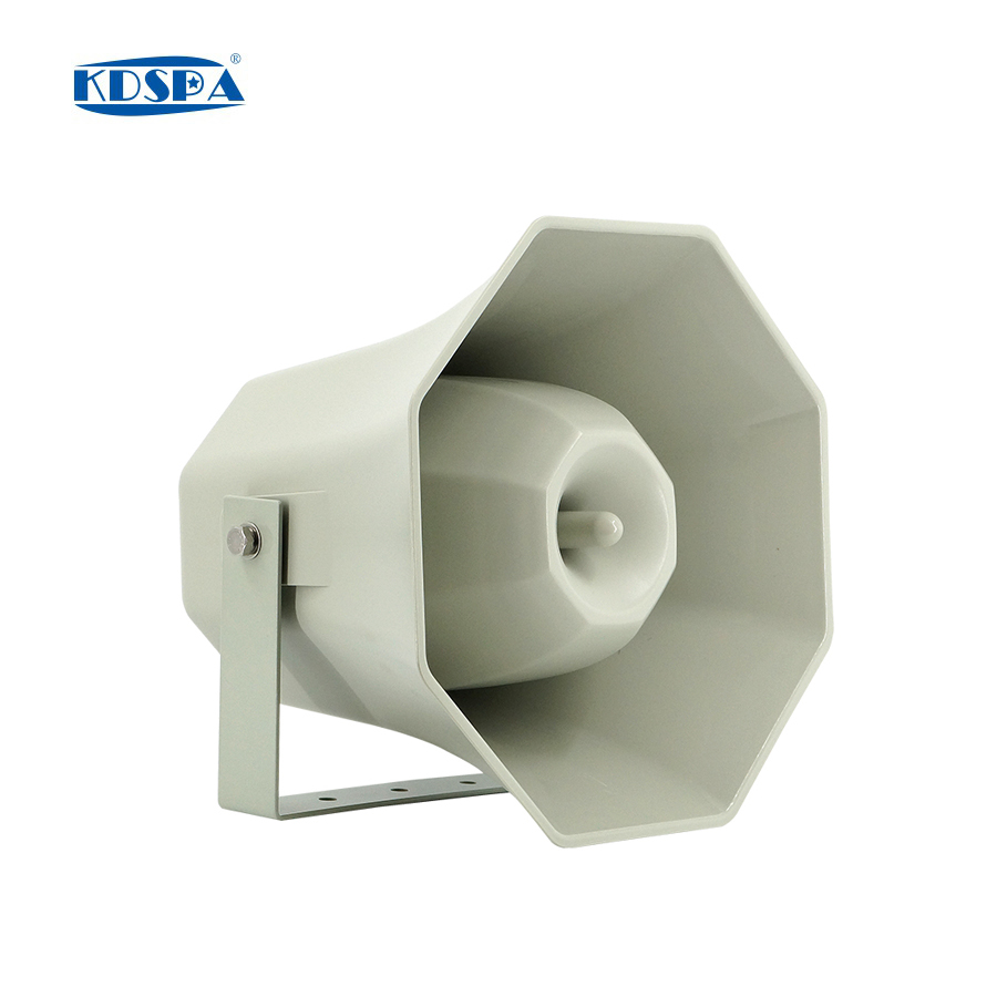 2)在發電機組室內等比較空曠面積大的場所,聲壓級高的號角揚聲器。這類號角不僅有防潮功能,而且聲壓級很大。由于四個發電機組噪聲巨大,必須選擇聲壓級較大的品種,故而我們選用了KDSPA品牌的 KD-622E號角揚聲器。詳細參數請點擊//daibaomu.com.cn/product_39_1092.html