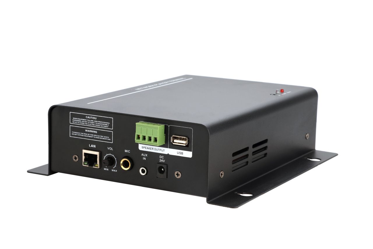自帶2X50W(8Ω) D類數字功放、CD級聲音輸出、接收打鈴、領導講話、英語聽力播放。