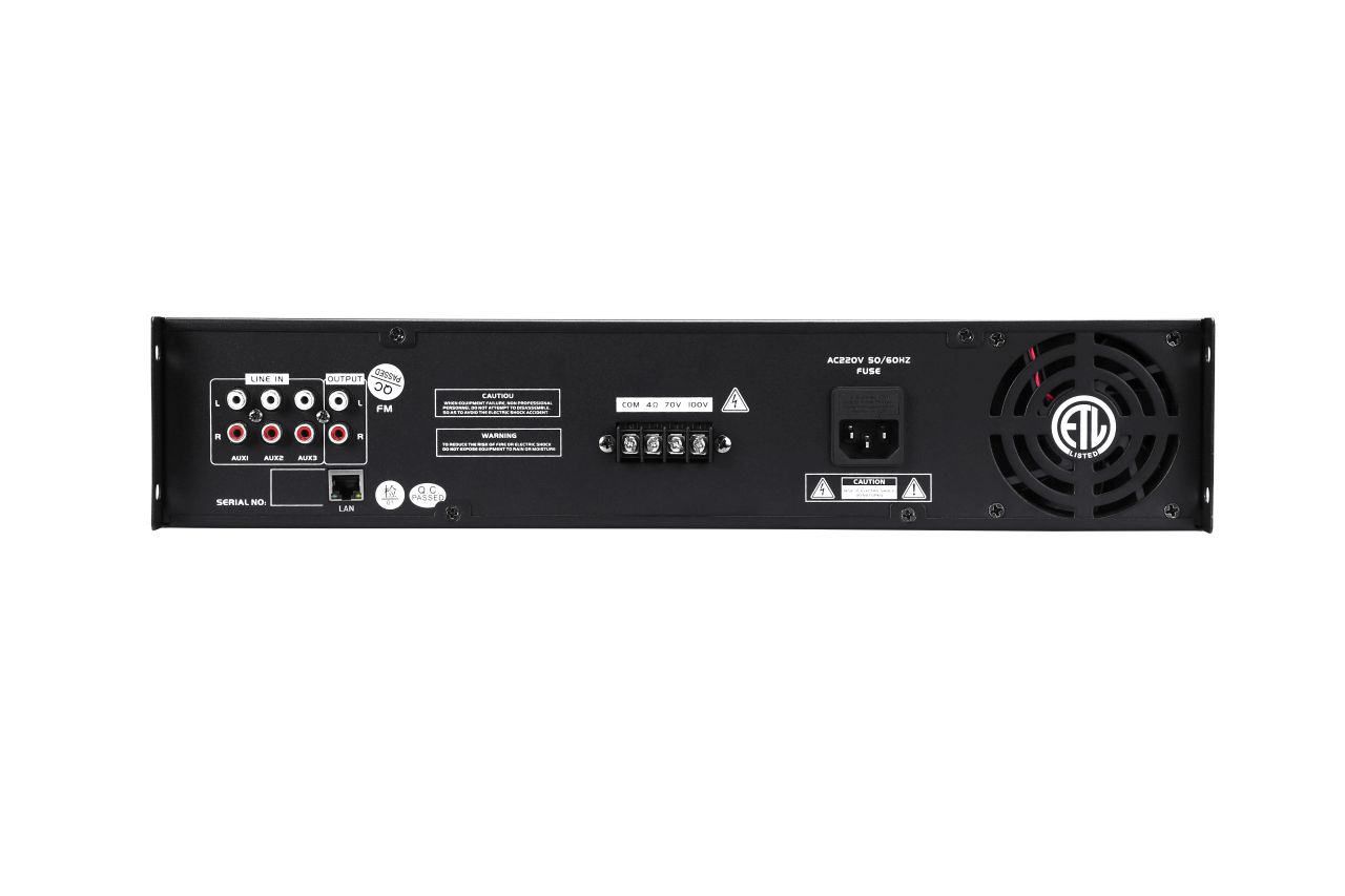 內置高保真專業模擬功放,具有60W/120W/180W/300W/360W/500W/650W定阻(4-16Ω)及定壓(70V、100V)功率輸出。