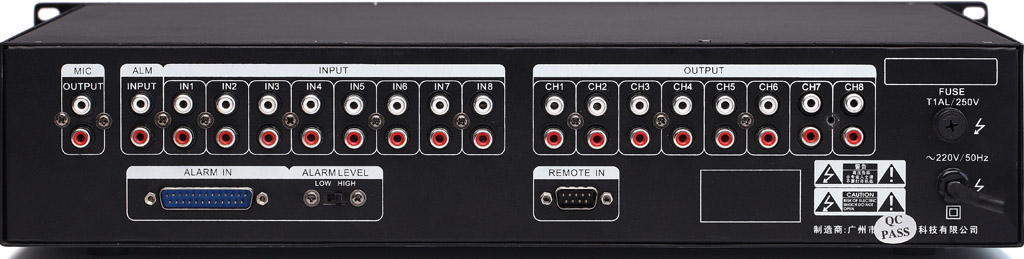 ◆ 信號矩陣功能(1路警急輸入、1路遙控尋呼輸入、8路普通輸入,8路輸出);