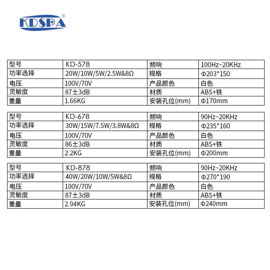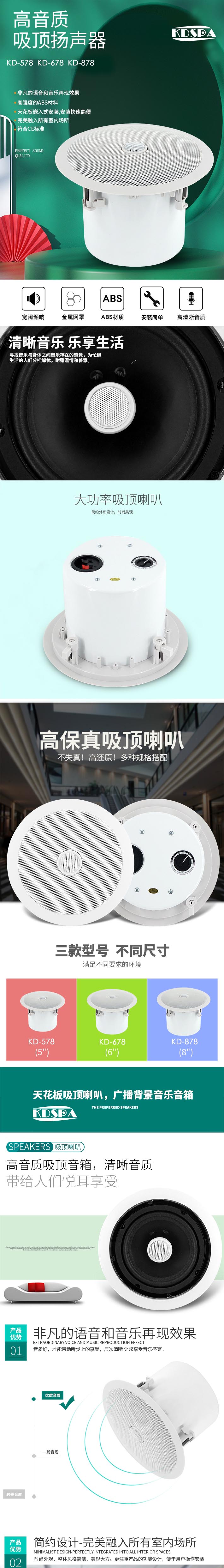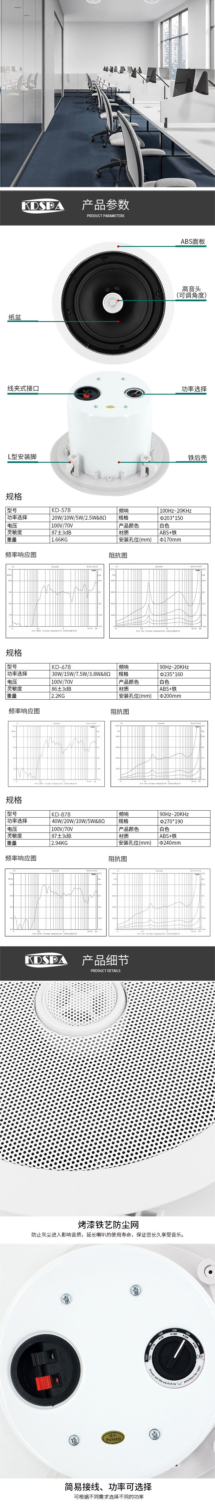 同軸帶高音功率可調吸頂音箱 KD-578\KD-678\KD-878